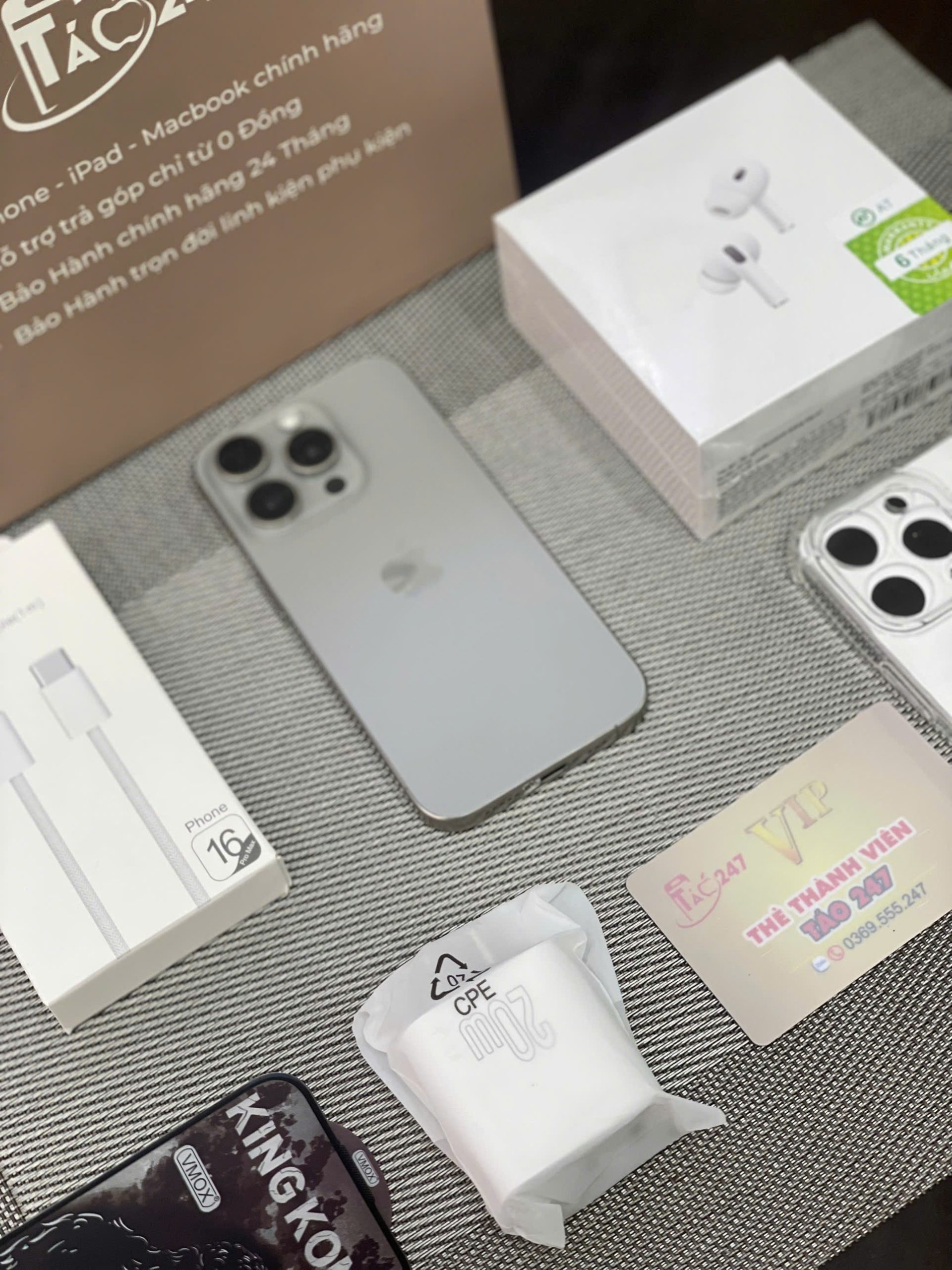 - ✅Tặng kèm phụ kiện chính hãng: Khi mua iPhone 15 Pro tại Táo 247, bạn có thể nhận được các phụ kiện cần thiết như ốp lưng cao cấp, kính cường lực chống va đập, tai nghe chất lượng hoặc củ sạc nhanh.